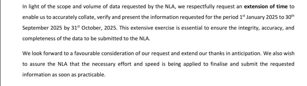 “I still insist that NLA’s letter was written on 7th October 2025, but the leadership of KGL received the letter on 13th October 2025 (attached to the Article is the available evidence).”