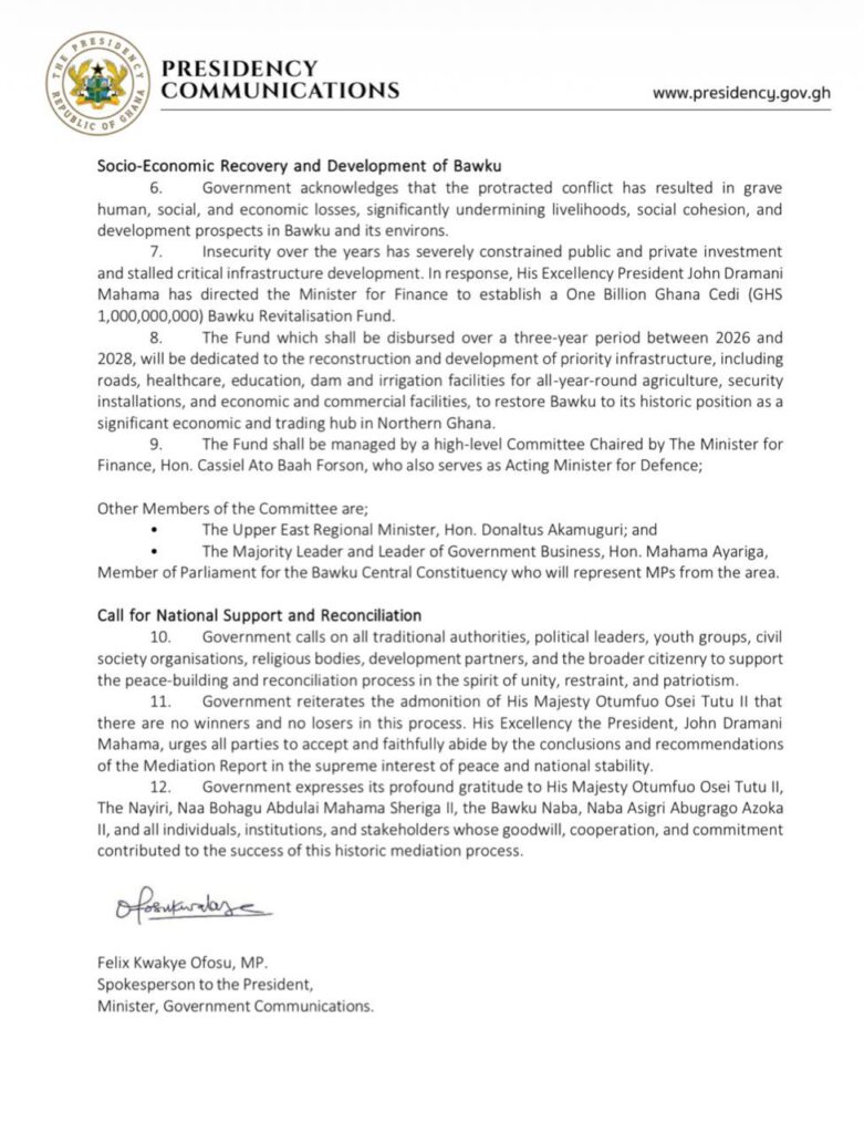 The endorsement of Otumfuo Osei Tutu II’s mediation report and the establishment of the revitalisation fund signal government’s commitment to addressing both the underlying causes and the developmental impact of the protracted Bawku conflict, which has affected lives, livelihoods, and economic activity in the area for decades.