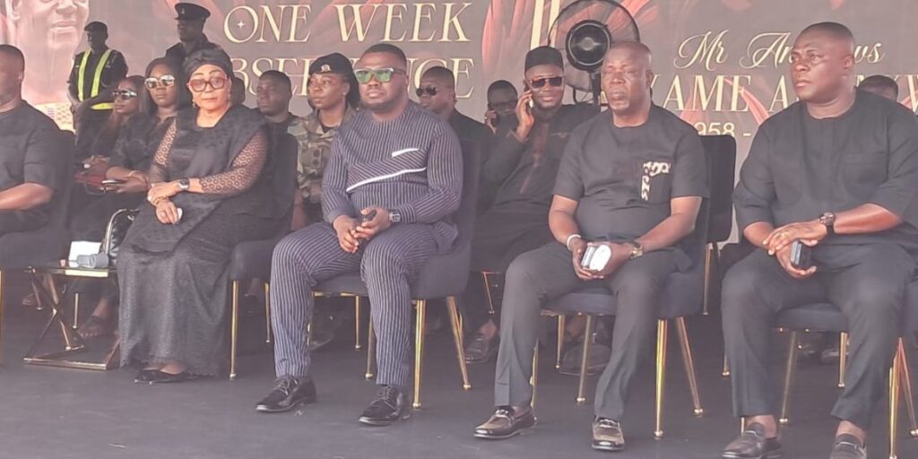 Leading figures of the governing National Democratic Congress turned out in large numbers for the one-week observance of the late Andrews Kwame Amankwah, father-in-law of Ghana Gold Board CEO Sammy Gyamfi.
