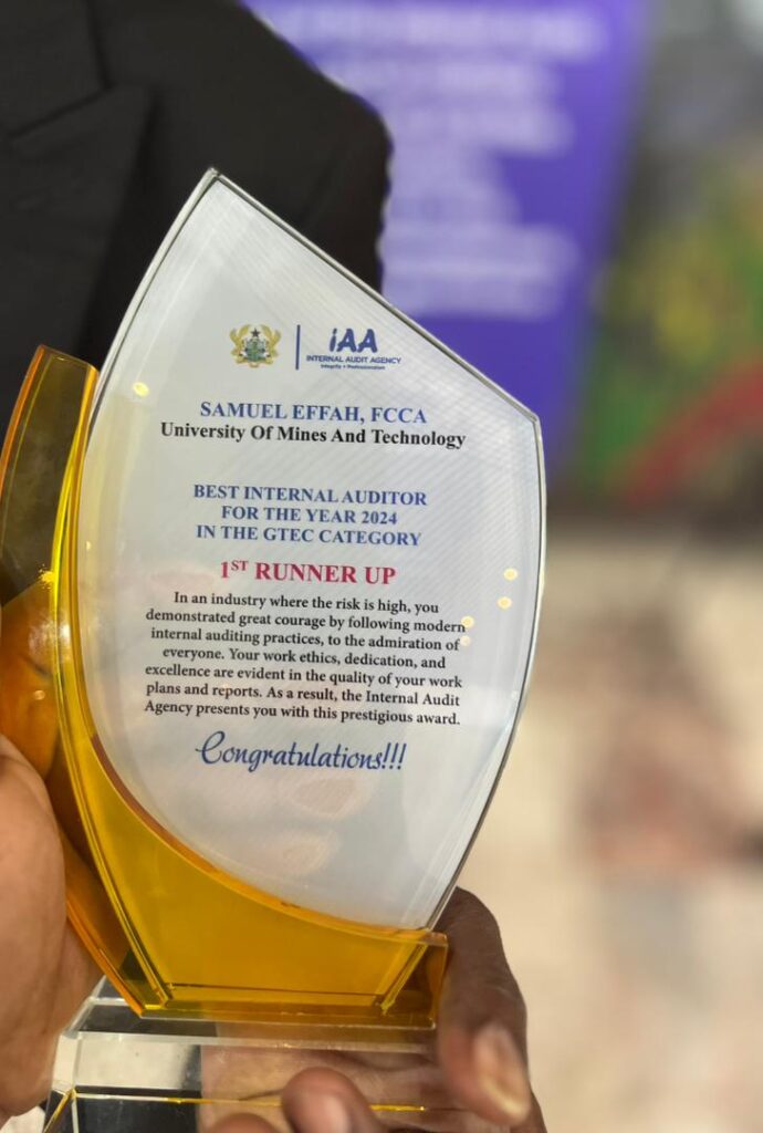 Samuel Effah, FCCA, from the University of Mines and Technology, has been honoured as the first runner-up for Best Internal Auditor of the Year 2024 in the GTEC category. The award was presented by the Internal Audit Agency at the national conference themed Resetting the Ghanaian Economy: The Role of the Internal Auditor.